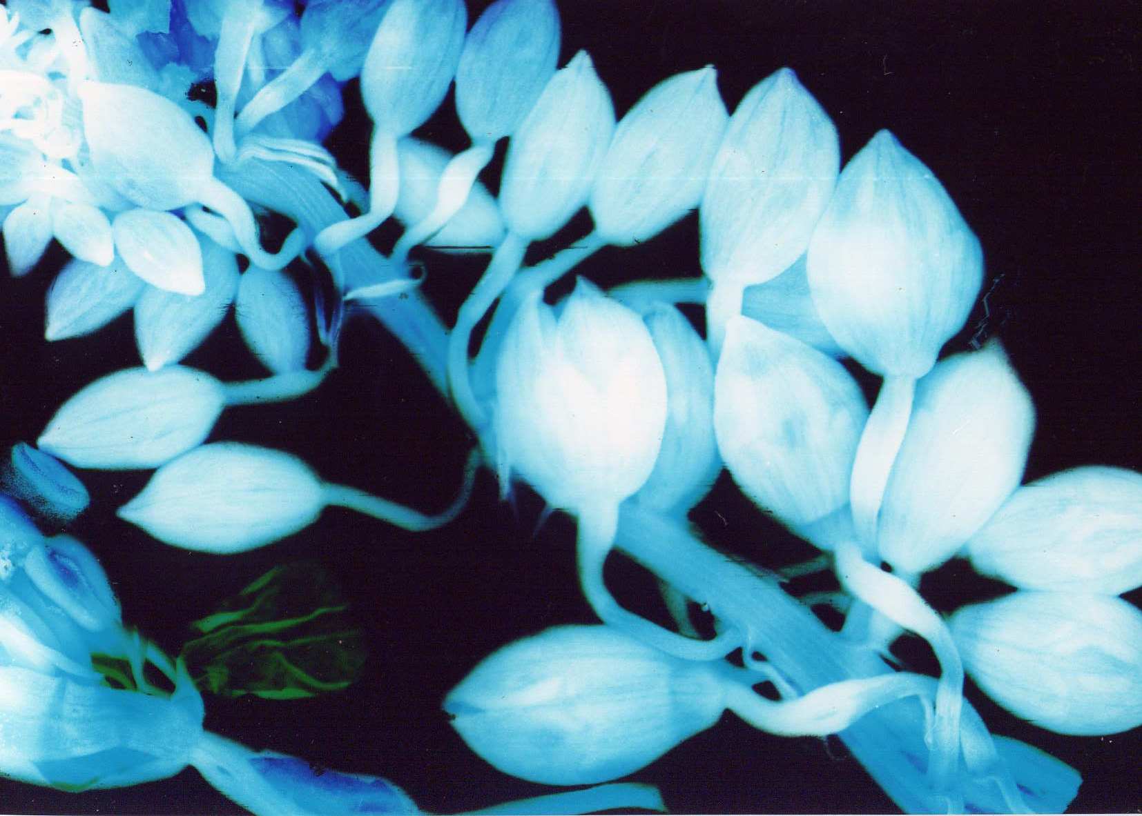 Eléments végétaux divers collés sur un négatifs vierge et passé dans la machine pour être developpés.